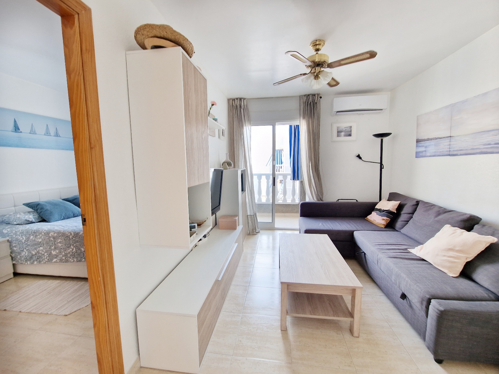 Built across a generous 45m2, this modern apartment is spacious and bright. The open floor plan seamlessly integrates an American kitchen, with a comfortable living area adorned with contemporary furnishings. The well-designed layout creates a sense of airiness and modernity that complements the coastal lifestyle.